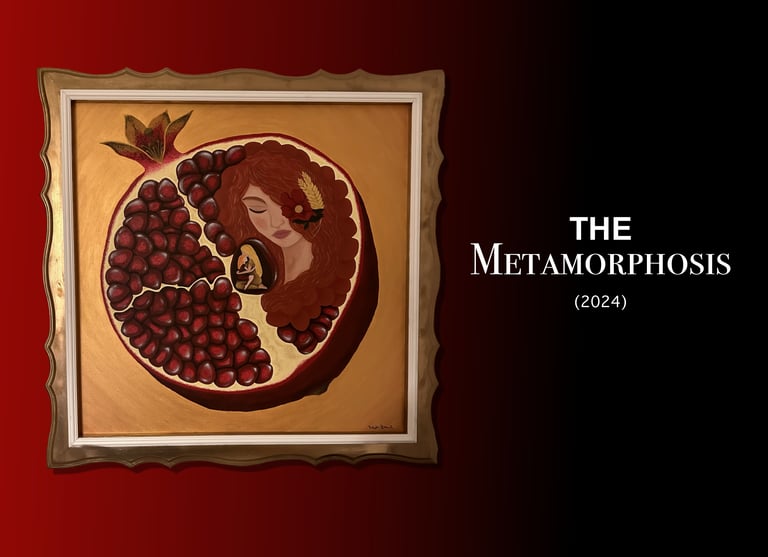 Die Symbiose aus Symbolik und Detail verschmilzt zu einem harmonischen Gleichklang von Natur und Mythologie, Lebensfreude und Wandel. Das Werk fängt die zeitlose Verbindung von Mutter und Tochter ein und erweckt die universelle Kraft von Fruchtbarkeit und Erneuerung zum Leben.