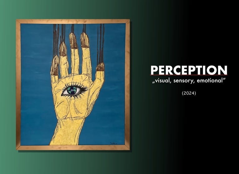 Eine Hand, aus deren Fingerspitzen fließender Mocca emporsteigt, während in der Mitte der Hand eine Weltkugel als Auge eingebettet ist. Dieses Auge repräsentiert die Wahrnehmung der Welt, während die Lebenslinien der Hand die tiefe Verbindung zwischen Leben, Kultur und dem stetigen Fluss von Gedanken verdeutlichen.