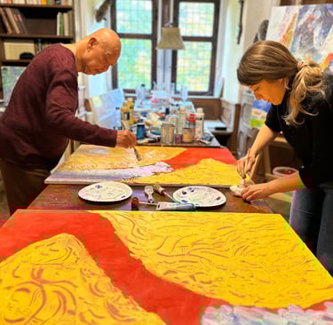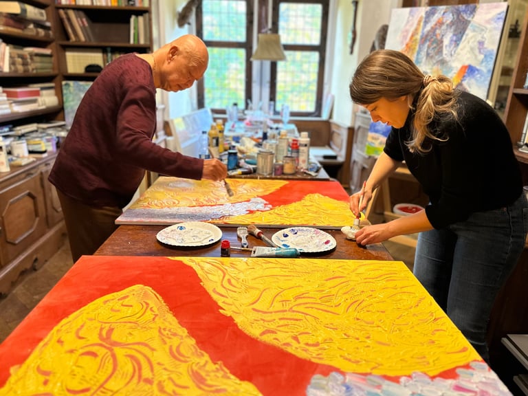 Seit 2023 vertiefe ich meine künstlerische Praxis durch die enge Zusammenarbeit mit dem renommierten buddhistischen Meister, Künstler und ehemaligen Kunstprofessor Amnart Klanprachar, der über viele Jahre in Bangkok lehrte.